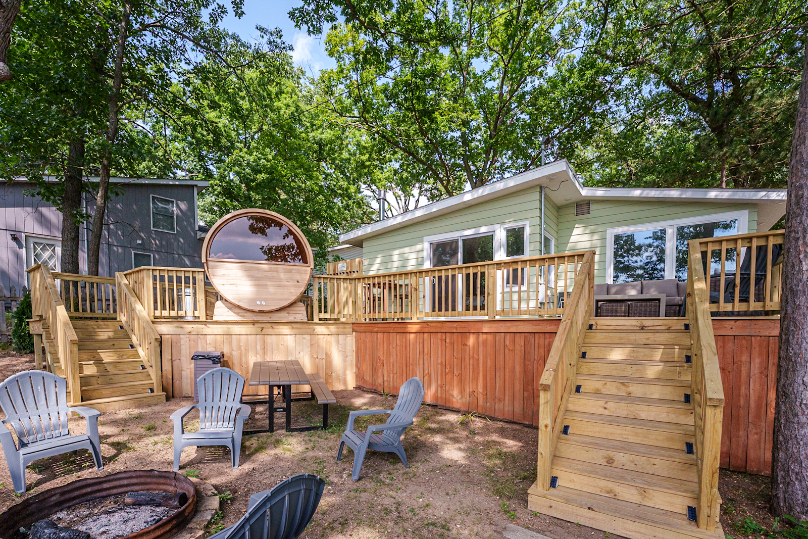 300 ft of private riverfront with kayaks, tubes, and firepit