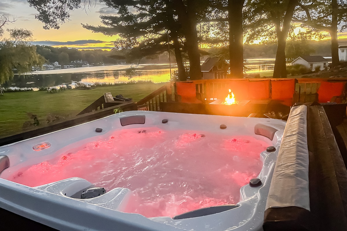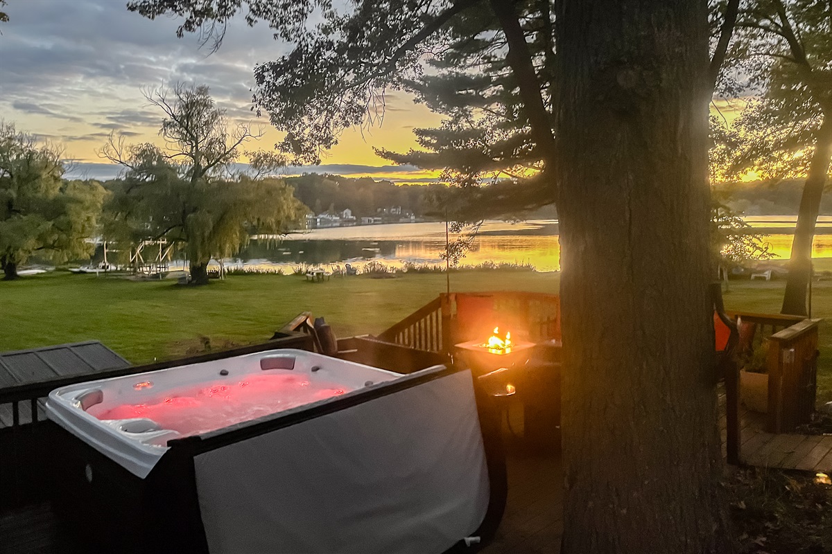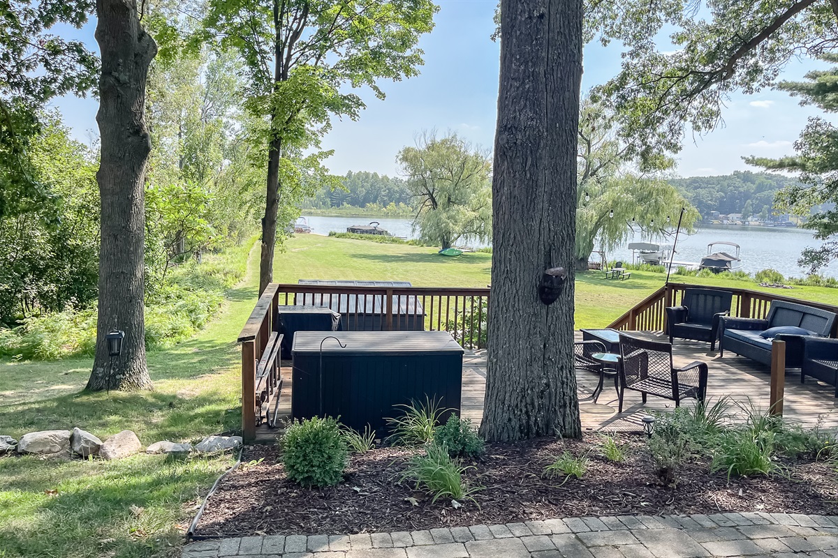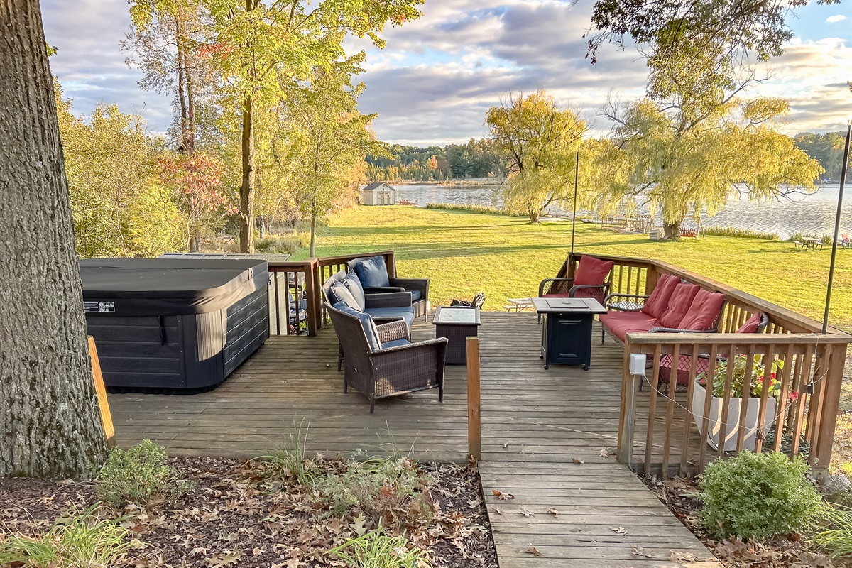 → <b>Multi-tier deck & hot tub</b> overlooking the water