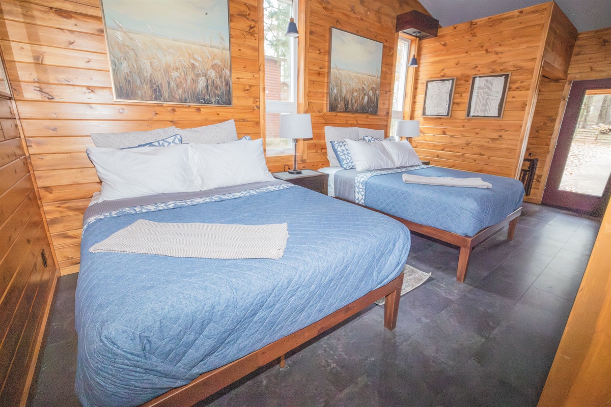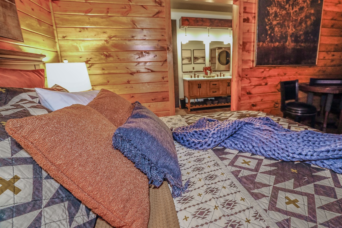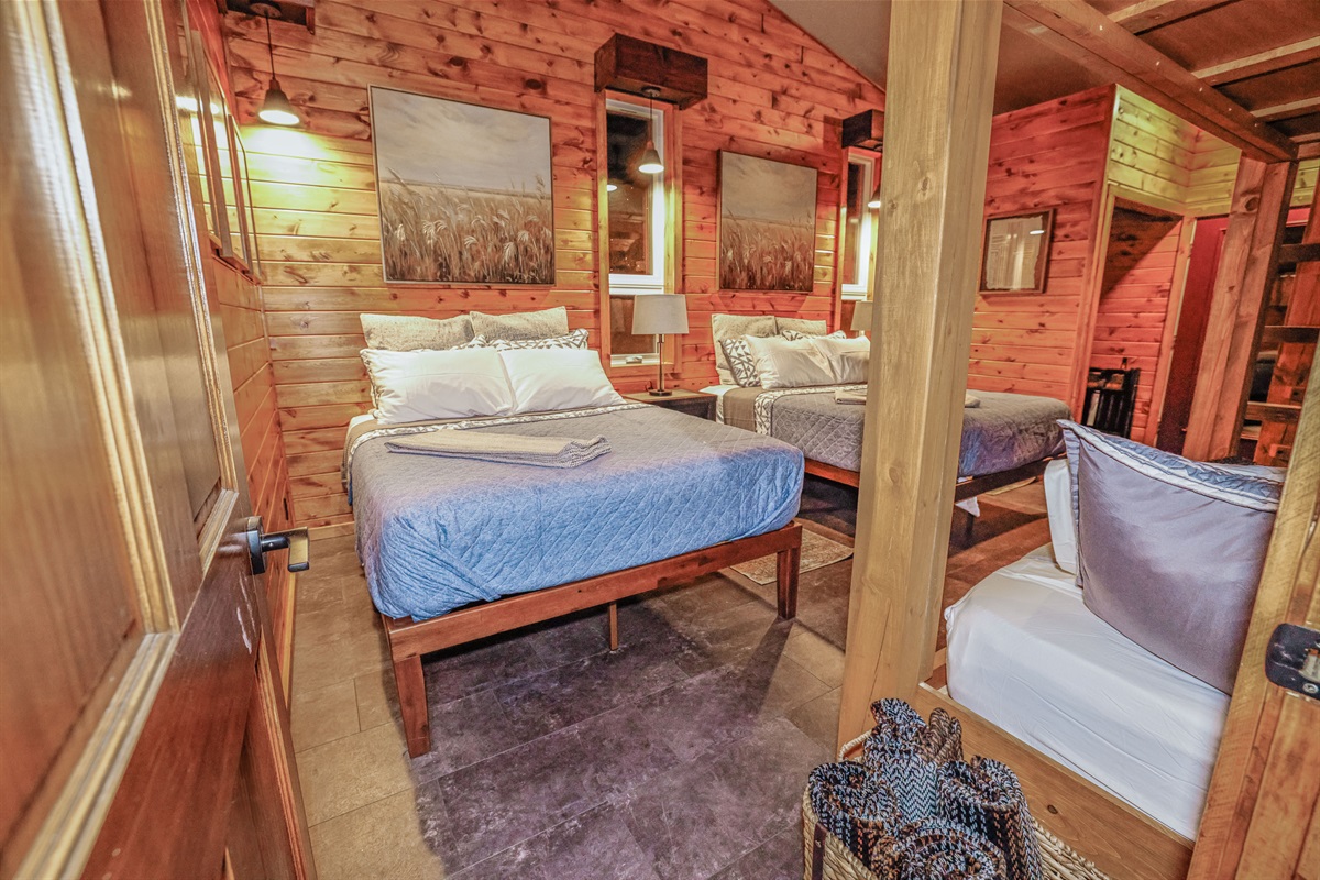 When night falls, soak in the secluded hot tub grotto, warm up by the fire, and retreat to spacious, hotel-style bathrooms. Trade ordinary weekends for something special—book your riverfront escape today.