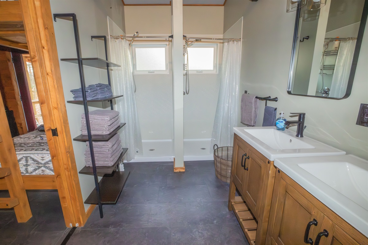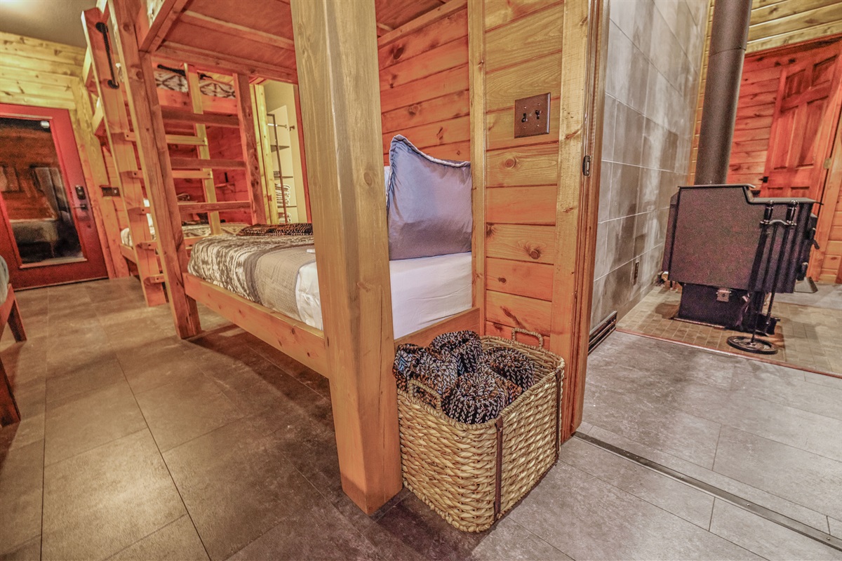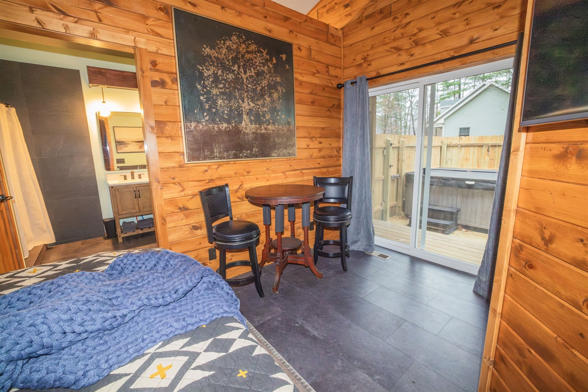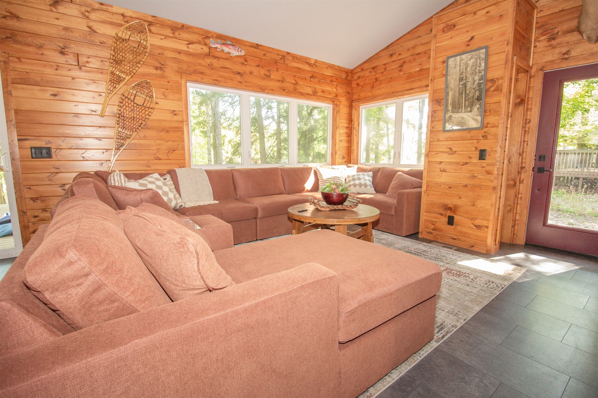When night falls, soak in the secluded hot tub grotto, warm up by the fire, and retreat to spacious, hotel-style bathrooms. Trade ordinary weekends for something special—book your riverfront escape today.