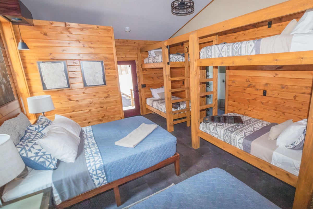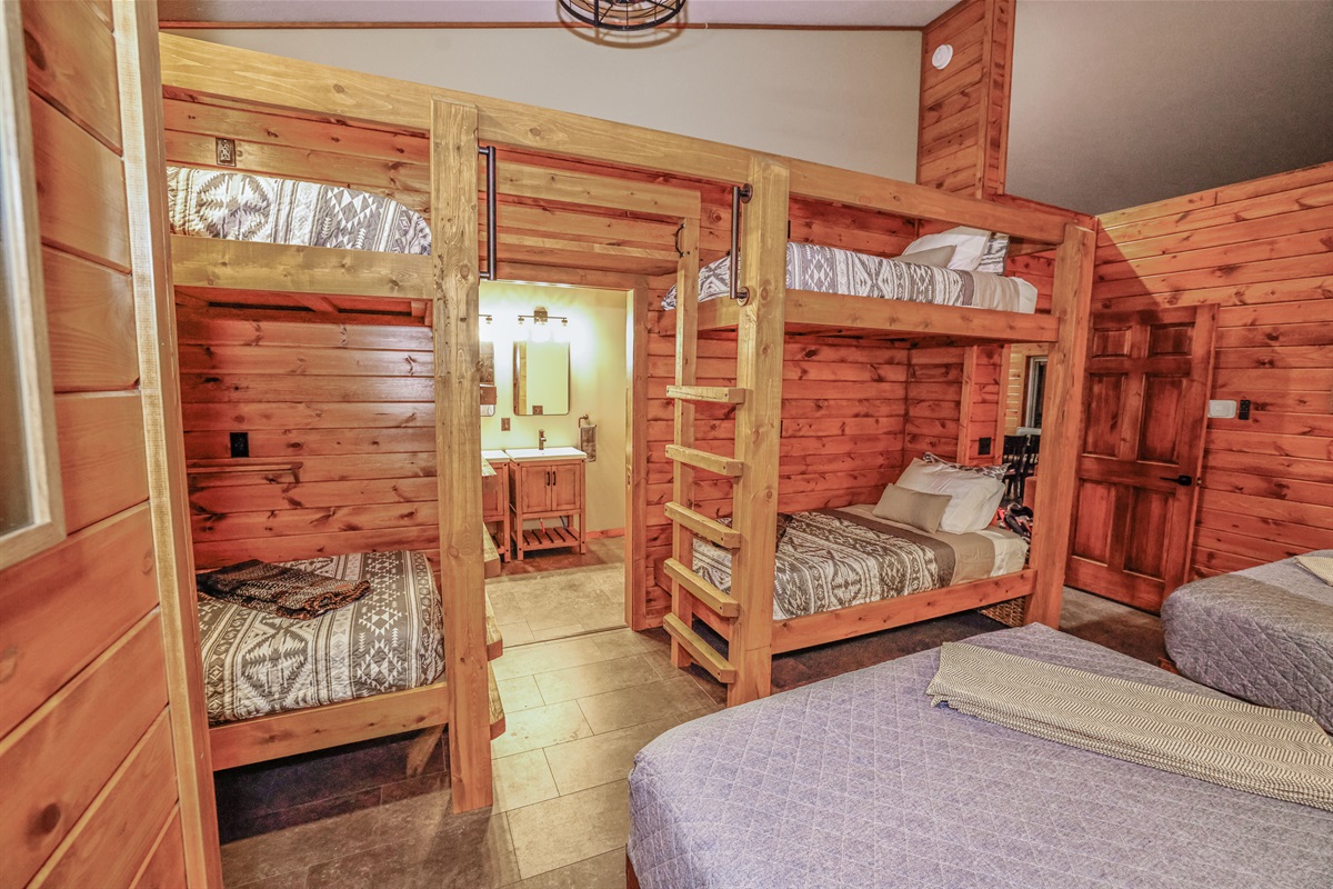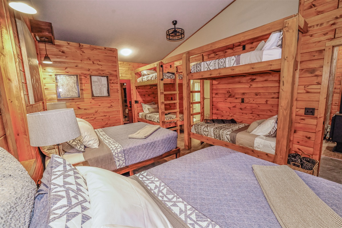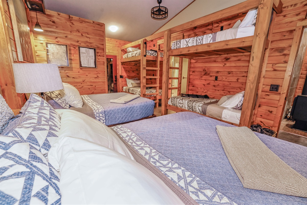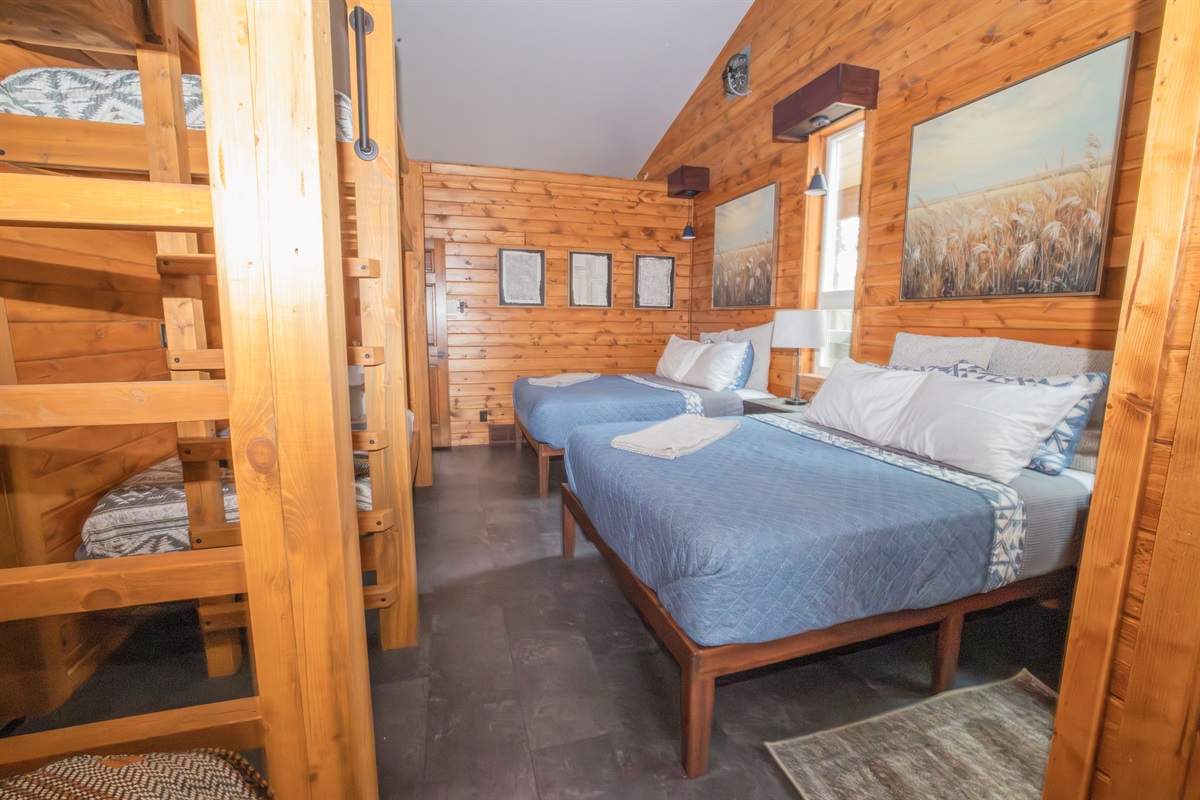 Spend the day paddling kayaks, floating in tubes, or fishing along the Muskegon, then grill out while the kids run between bunks and the yard.