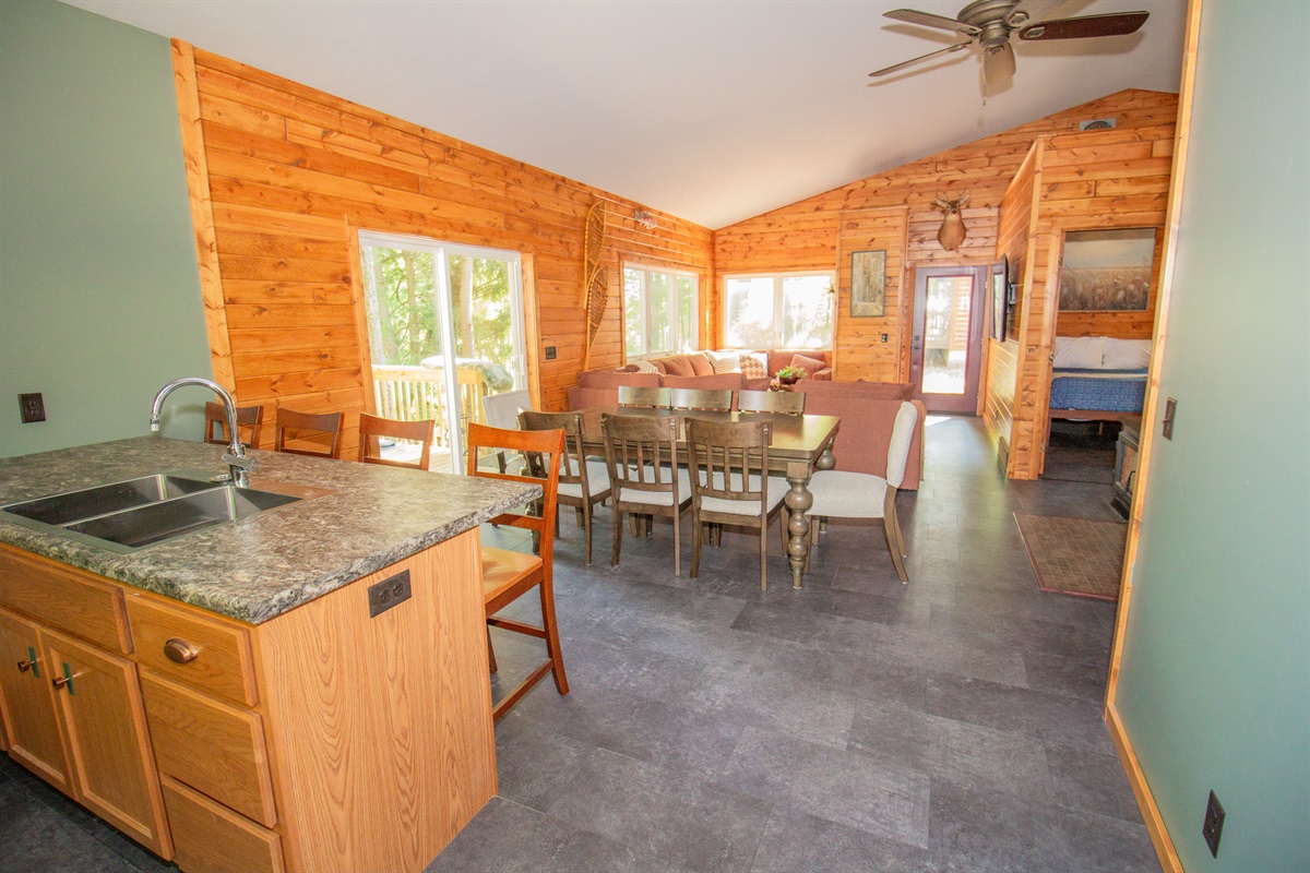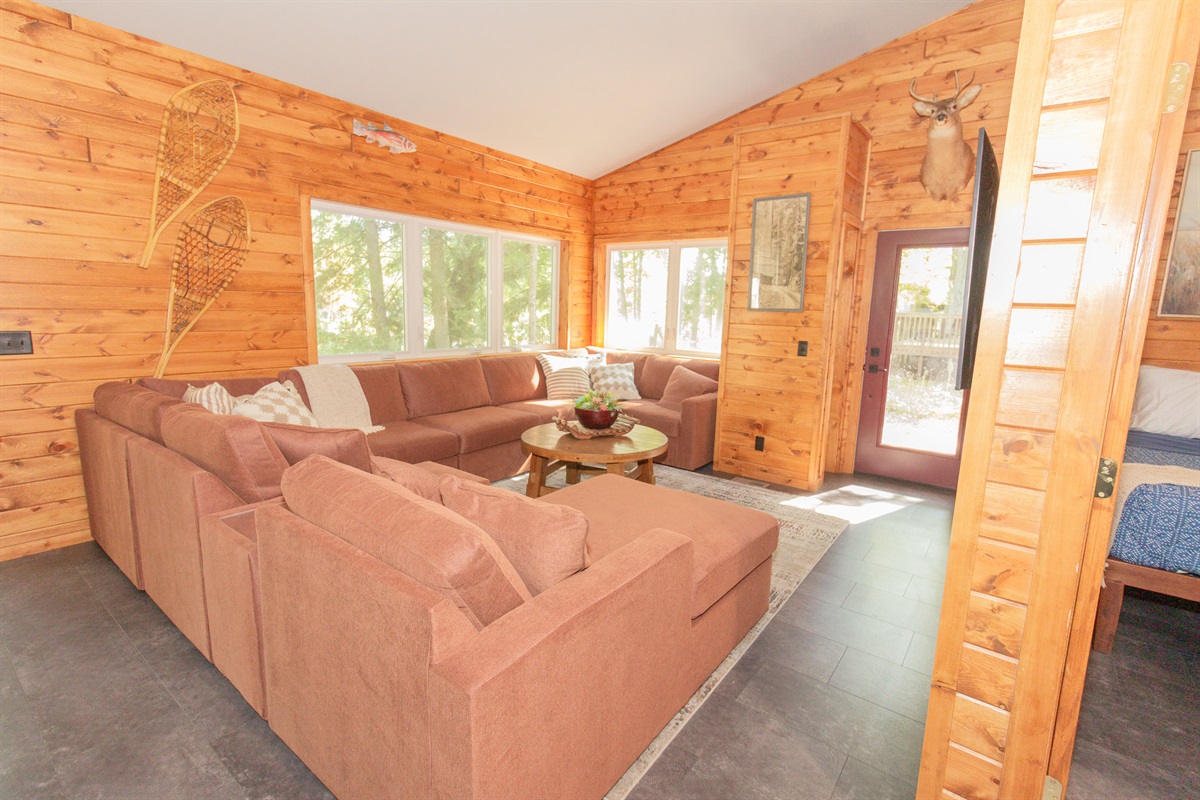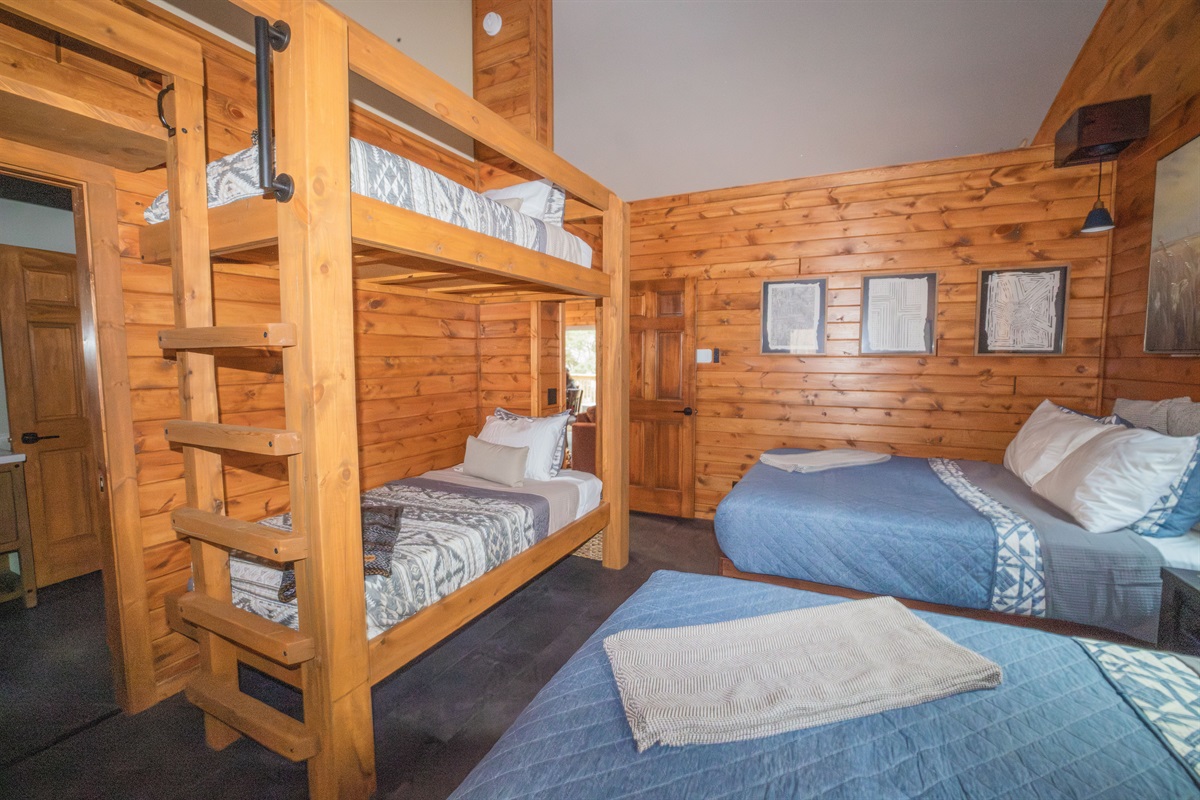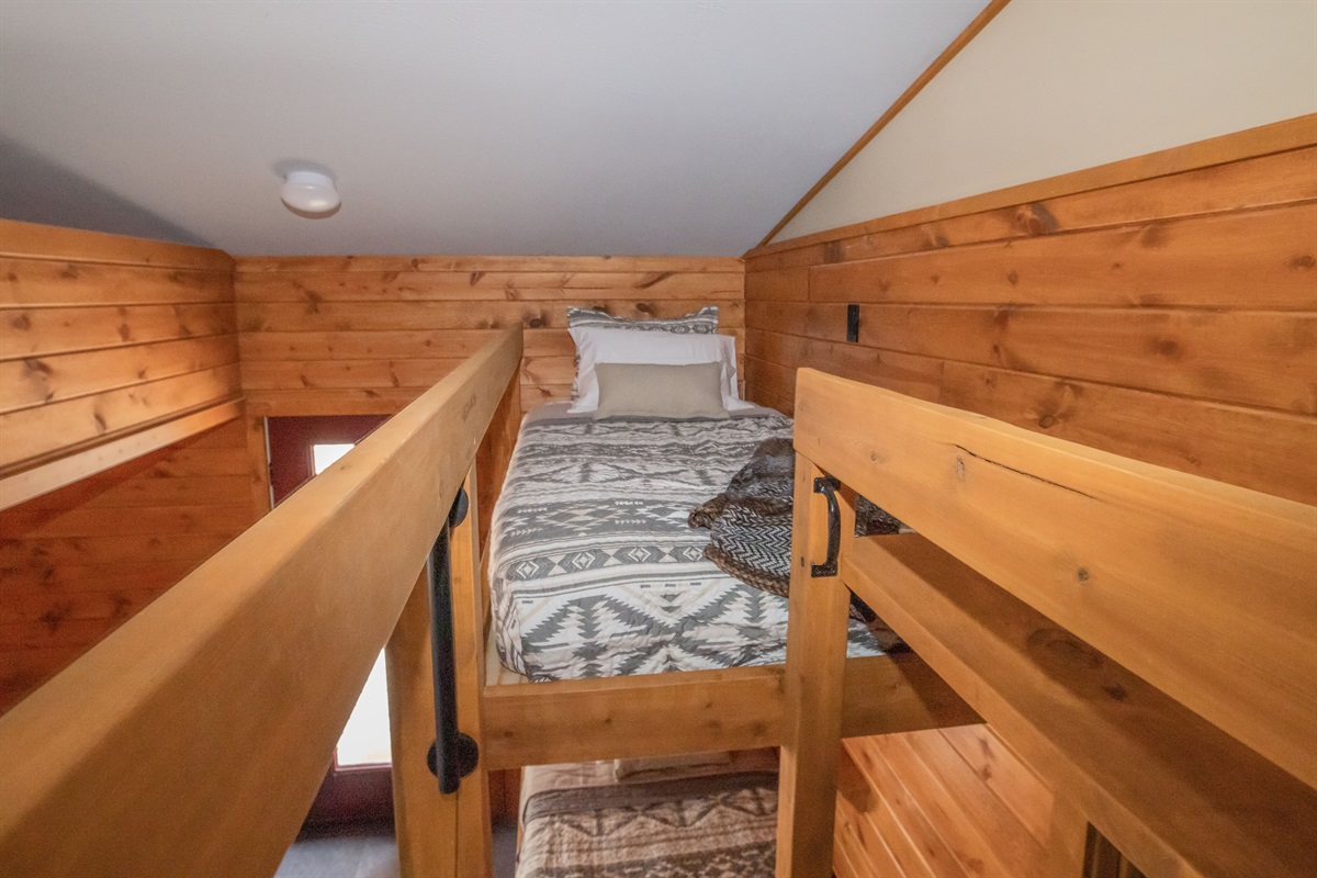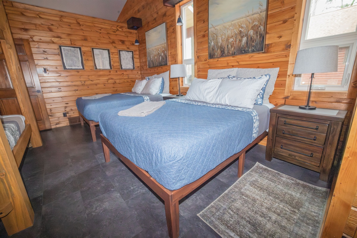Spend the day paddling kayaks, floating in tubes, or fishing along the Muskegon, then grill out while the kids run between bunks and the yard.