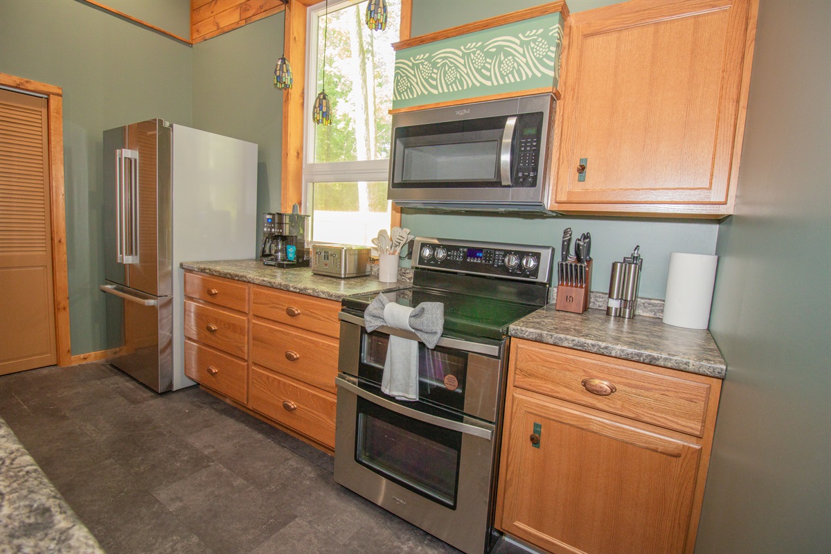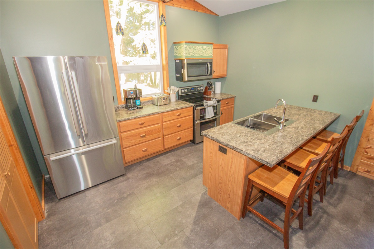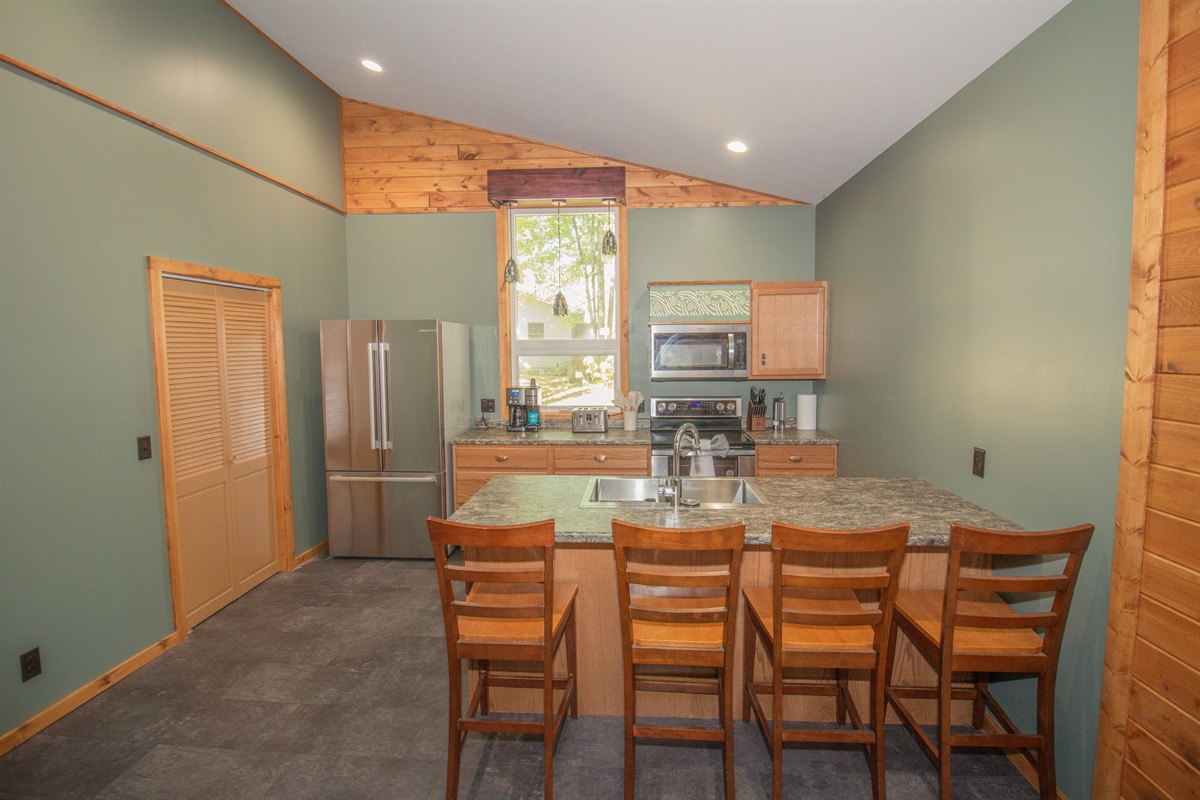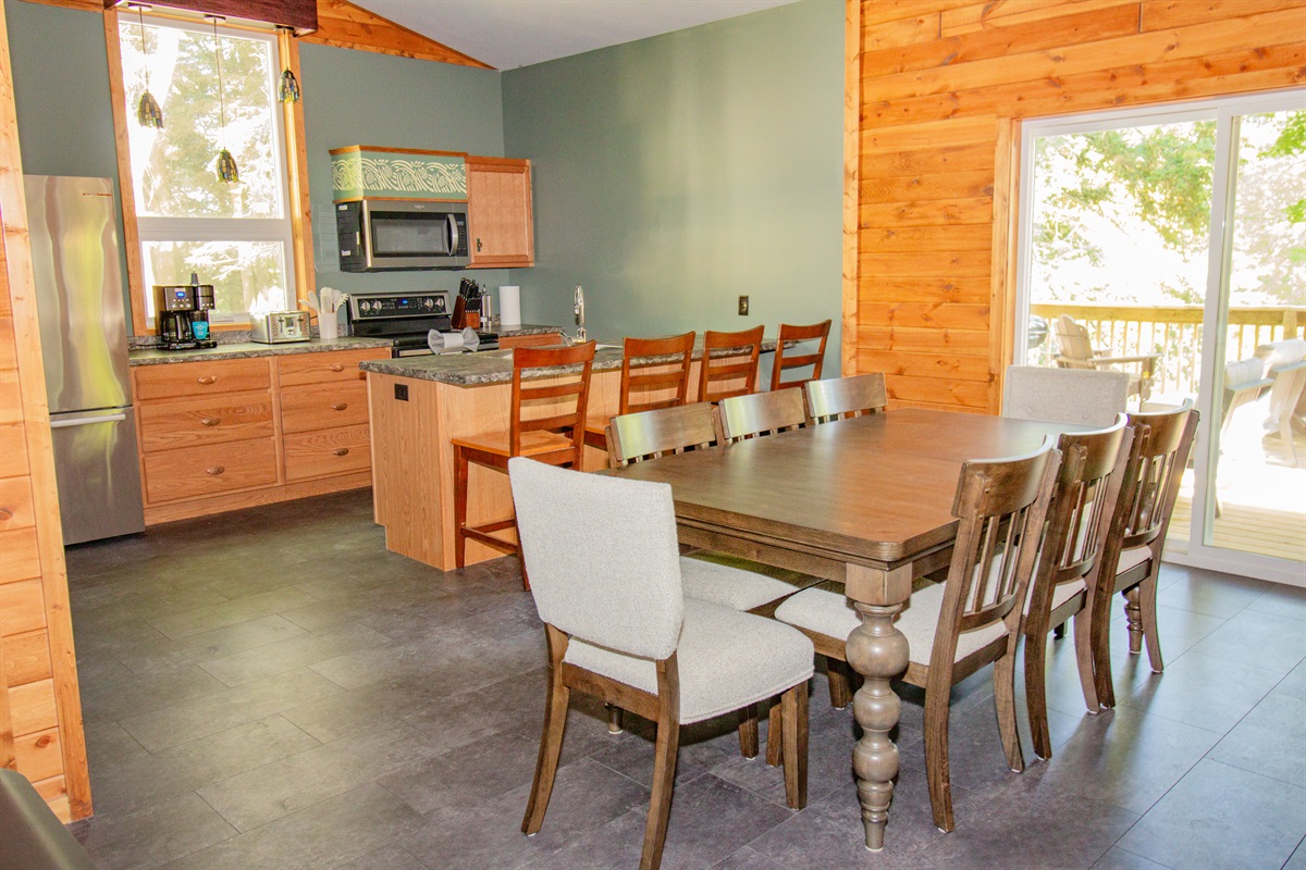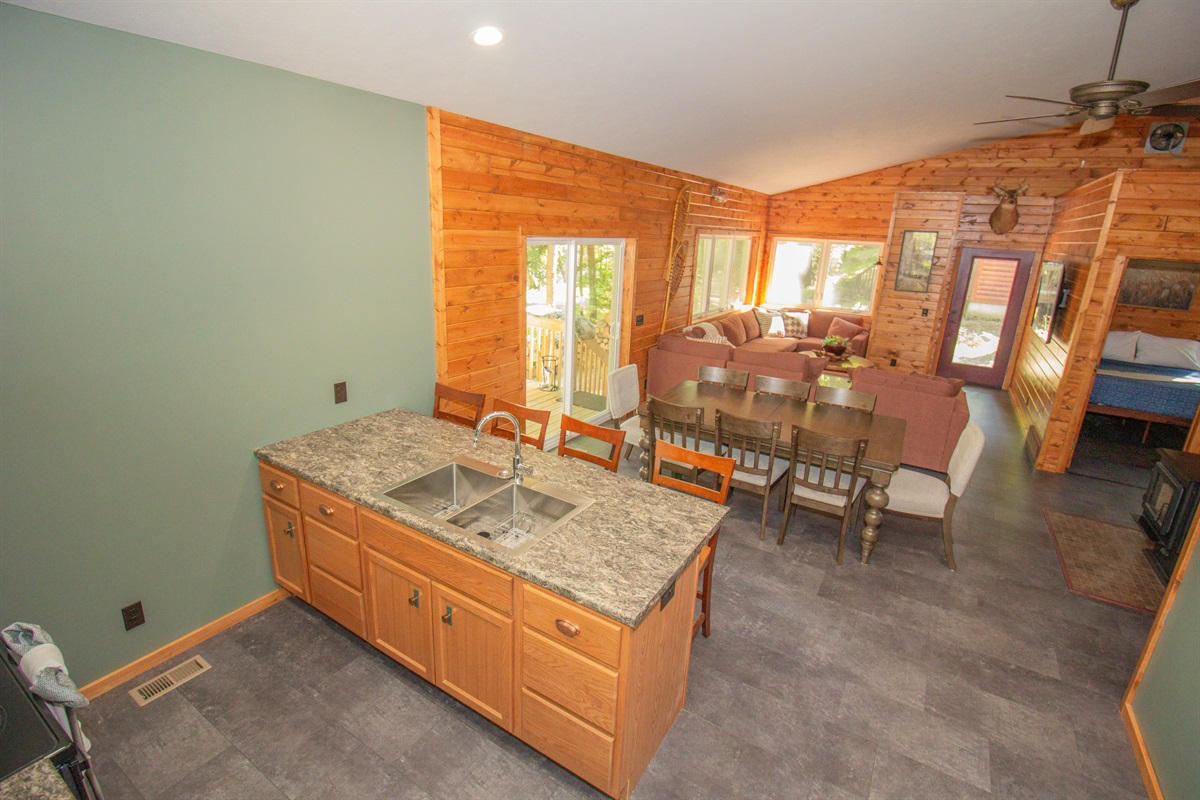 Spend the day paddling kayaks, floating in tubes, or fishing along the Muskegon, then grill out while the kids run between bunks and the yard.